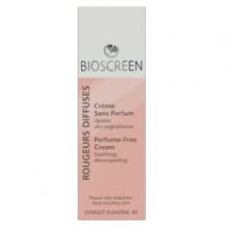 Bioscreen Crème – Rougeurs Diffuses (40 ml) Enrichi en agents anti-rougeurs – Ginkgo flavone 40, Ruscus, Vigne rouge, Ficaire – ce soin apaise et protège les peaux les plus sensibles. Il permet de retrouver confort et souplesse tout en procurant au teint un aspect clair et velouté.